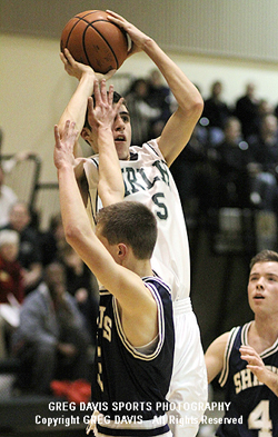 | Led by a season-high 25 points from Andrew W., the Mt. Rainier Lutheran High School boy's basketball team wasted little time continuing their winning ways by getting off to a quick start (17-3 at the end of the first quarter) and defeating the Puget Sound Adventist Academy Sharks, 60-37. The 13th win of the season (the Hawks are now 13-3 overall and 4-0 in league play) was a team effort, and others contributing on the offensive end were Ryan H., with 12 points, David G., with 8 points, Brendan M., with 6 points, Zach L., with 3 points, and Carsten N., Ryan B., and Tyler S., all chipping in 2 points apiece. For detailed information on the Hawk victory, head to the Seattle Times and to the News Tribune web sites. MRLH next travels to Northwest Yeshiva for a league match-up on Thursday. GO HAWKS! - MRLH Sports Photo Blog staff MRLH BOY'S BASKETBALL SEASON SCHEDULE / RESULTS PAGE |