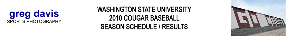 | 4/3/2010 | @ Washington (Pac-10) | Washington 4 - WSU 3 | L | 15-9 (1-2) | |