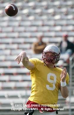 | Vince Grippi, Cougar beat writer, is reporting tonight in his Spokesman-Review Sportslink Blog that the news out of Pullman is that Kevin Lopina has been selected as the starting quarterback for the Cougars first game of the season on Saturday, September 5, 2009, against the Stanford Cardinal. Grippi said the announcement about the starting QB job came from head coach Paul Wulff at the end of tonight's practice. Wulff also said that sophomore Marshall Lobbestael would also get snaps early in the game unless Lopina has a hot hand going. The competition between Lopina and Lobbestael for the starting nod has been neck-and-neck throughout camp, with neither being able to put much distance between themselves and the other. Regardless of who lines up behind center this season, their job should be much easier than it was last year with the line play in fall camp being much improved over last season. It is going to be fun to watch both quarterbacks operate in the no huddle offense this season that WSU was going to run last year, until they lost Gary Rogers, Lopina and Lobbestael to injury (only Lopina was able to come back and play last year, and the Cougars had to burn the redshirt of JT Levenseller to be the back-up and also held an all-campus try-out for the scout team quarterback job.....here's to an injury free 2009 season!). GO COUGS! - WSU Sports Photo Blog staff |